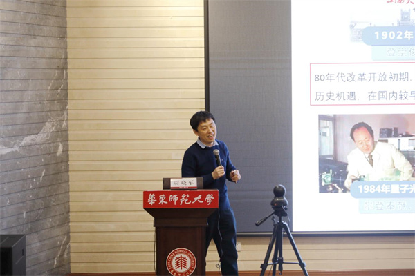 1月18日上午,物理与电子科学学院“寒假预备周”思维训练营系列活动在闵行校区光学大楼报告厅开展,山西大学物理电子工程学院院长贾晓军教授受邀作“连续变量量子信息研究”报告,报告由精密光谱科学与技术国家重点实验室荆杰泰教授主持。学院教师代表和百余名本科生、研究生线上线下共同参加。