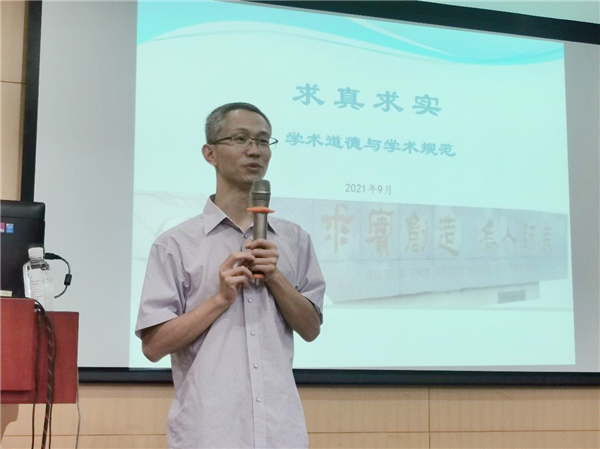 学术诚信和学术道德教育是研究生教育质量的重要保障。9月2日上午,学院副院长胡炳文、研究生教务秘书王清芝分场次开展了学术道德教育。胡炳文指出,遵守学术道德和学术规范是治学研究的前提和底线,教育部和学校有明确的学术规范和学术道德文件,希望同学们明确学术不端行为的范畴和严重性。2021级研究生新生王一达、姚守权和姜小平等结合自己的科研经历,分别就“两种典型的学术不端行为、如何避免出现学术不端以及学术规范的注意事项”等问题进行了相关解读。王清芝结合毕业要求,详细讲解了2021级学术型研究生科研成果要求、学术不端行为和延期毕业现象等问题,嘱咐同学们尽早将科研成果落地,先做合格毕业生再做优秀毕业生。
