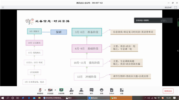 继续深造是学院许多本科毕业生的选择,学院分别于4月8日和4月15日举办了物理学系和电子科学系免试直升、考研、留学申请经验线上分享会,10位成功获得研究生升学资格的2020届毕业生为学弟学妹分享直研、考研、申请出境留学的经验。200多位同学参加了此次活动,活动由毕业班辅导员黄蕊主持。