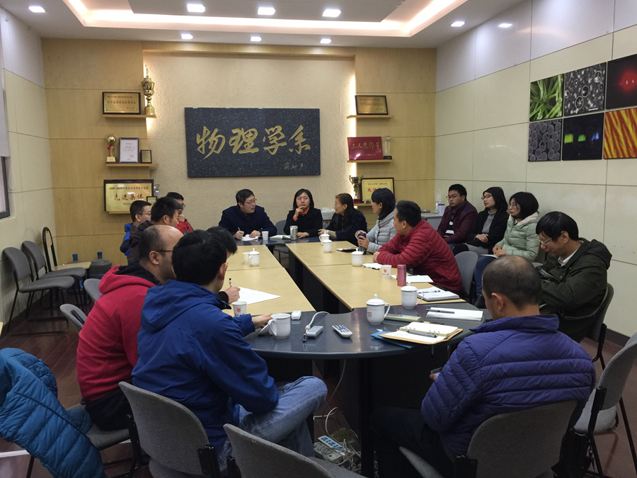 之后,在吴小山院长的邀请和陪同下,我们一行人前往南京大学鼓楼校区访问,与乐鱼(中国)一站式服务平台院长李建新、副院长吴小山、院党委副书记鞠艳、乐鱼(中国)一站式服务平台各系的分管领导、大学物理竞赛指导老师、拔尖班班主任、学生辅导员等座谈交流,大家就乐鱼(中国)一站式服务平台的专业设置、拔尖班学生的选拔机制、本科生科研训练、中国大学生物理学术竞赛等问题进行了深入的讨论,交换了双方的经验,也提出了不少解决问题的新思路。