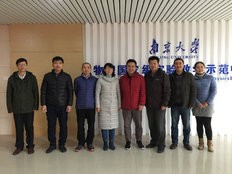 在乐鱼(中国)一站式服务平台副院长吴小山的陪同下,大家一起参观了南京大学仙林校区的基础物理实验中心,听取了实验中心副主任胡小鹏对中心整体情况的介绍。南大物理国家级实验教学示范中心的教学理念是让学生们接触前沿科学,增强动手能力,所以基本课程设置都是围绕这一核心。课程的构成主要分成三层次:基础+综合+研究。副院长吴小山还对整个实验中心人员的构成、正高、副高教职工的比例、经费来源和高端演示物理实验的开课情况作了补充,随后我们还参观了仙林校区的实验室。