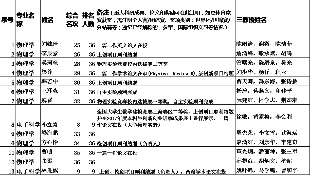 根据《物理与材料科学学院推荐免试直升2019年硕士研究生选拔方案细则》,经特别推免程序,物理与材料科学学院拟向学校推荐特别推免名单如下:
