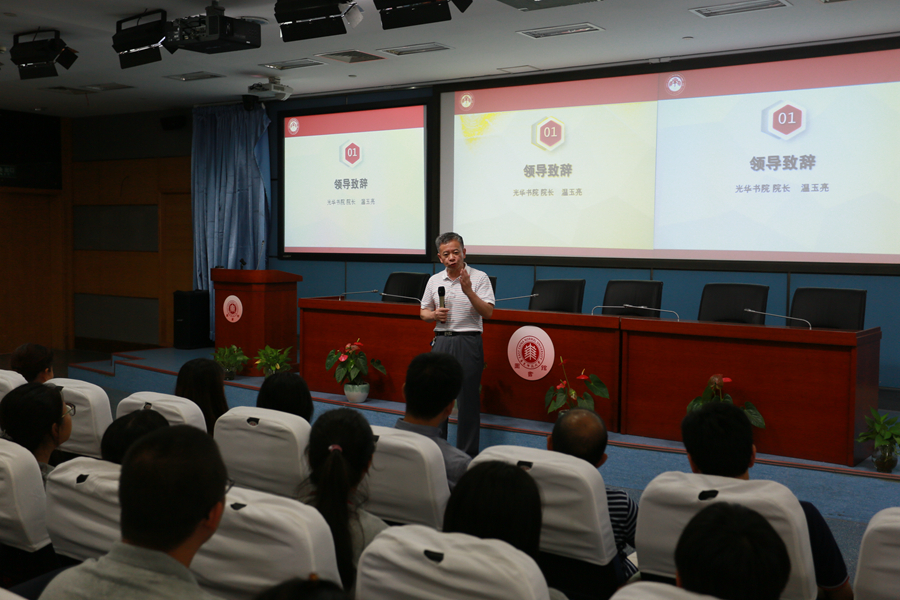 接下来光华书院院长温玉亮以“鱼与水”的关系类比学院和书院的关系,只有在学院的指导下,书院才能创造一个学生成长成才的良好环境。希望新生刻苦学习、热爱生活,开启自己精彩的人生新篇章。