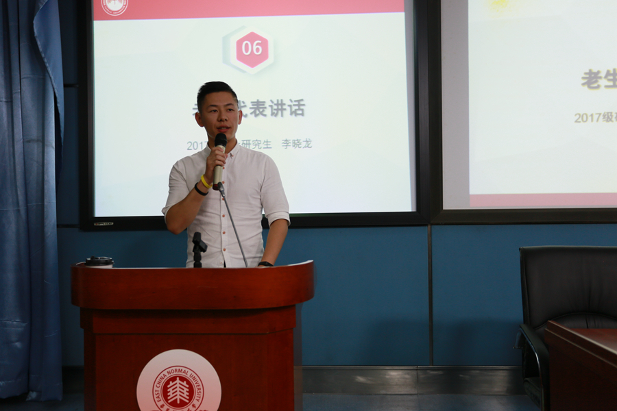光学专业2017级硕士研究生李晓龙代表老生欢迎新同学的到来,表示要在夯实专业基础的同时,不断拓宽知识面,恪守学术道德,勇于在传承中创新,在一个充满张力的知识世界中塑造自己。