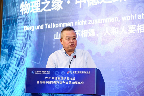 上海市科协党组书记、副主席马兴发,中国驻德国大使馆教育处公使衔参赞黄伟,GCPD现任主席、德国汉诺威大学教授丁飞在开幕式上致辞。马兴发在致辞中表示,科协是“全球科技工作者之家”,欢迎科学家、科技工作者来这里交流研讨、开展活动、交朋会友,感受上海市科协“科技会客厅”的国际风范、科技魅力、人文底蕴和时尚活力,进一步推动上海的国际科技和人文交流。丁飞表示,在疫情席卷全球的严峻形势下在上海举办线上线下活动,这是一次难得的良机,让分处中德两地的同仁与参会者们得以加深联系,虽然相隔万里之遥,仍能聆听彼此对前沿基础科学、新一轮产业技术的洞见。