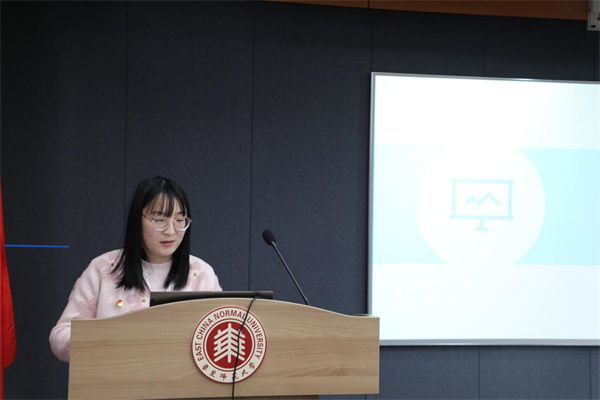 物理学系教工党支部书记杨洋、电子科学系教工党支部书记黄荣、纳光电工程中心教工党支部书记李晓冬、磁共振实验室教工党支部党员赵琛煊、物理实验教学中心教工党支部党员郭超修、光谱国重实验室第一教工党支部党员和晓晓、光谱国重实验室第二教工党支部党员姚佳丽、光谱国重实验室第三教工党支部副书记王雪力分别作主题分享。