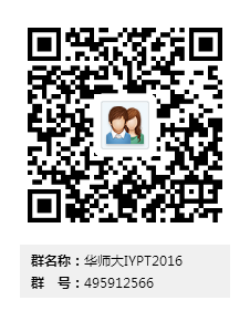 对本竞赛有兴趣可加入QQ群交流心得,解疑答惑:华师大IYPT2016,群号49591266。入群后请将群昵称改为系名+姓名。