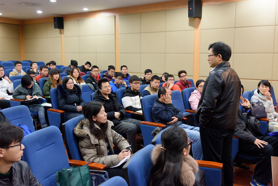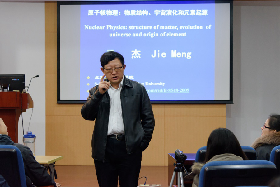 2018年1月5日上午,北京大学孟杰教授,应我校物理与材料科学学院副院长周先荣的邀请,在闵行校区的物理楼226报告厅,做了题为“原子核物理:物质结构、宇宙演化和元素起源”的专题讲座。讲座由周先荣副院长主持,于上午十点钟准时开始。