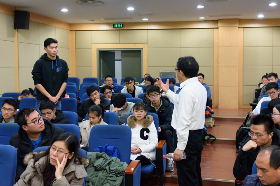 讲座的最后,同学们积极地提出了自己的疑问,而孟杰教授也很认真、很有针对性地对于每个问题谈了自己的观点和看法。孟教授提出,在实验方面,我们和西方国家相比还有很长的路要走,新一代年轻人任重道远。最后,十一点三十分时,专题讲座在孟杰教授与同学们的讨论中圆满结束。