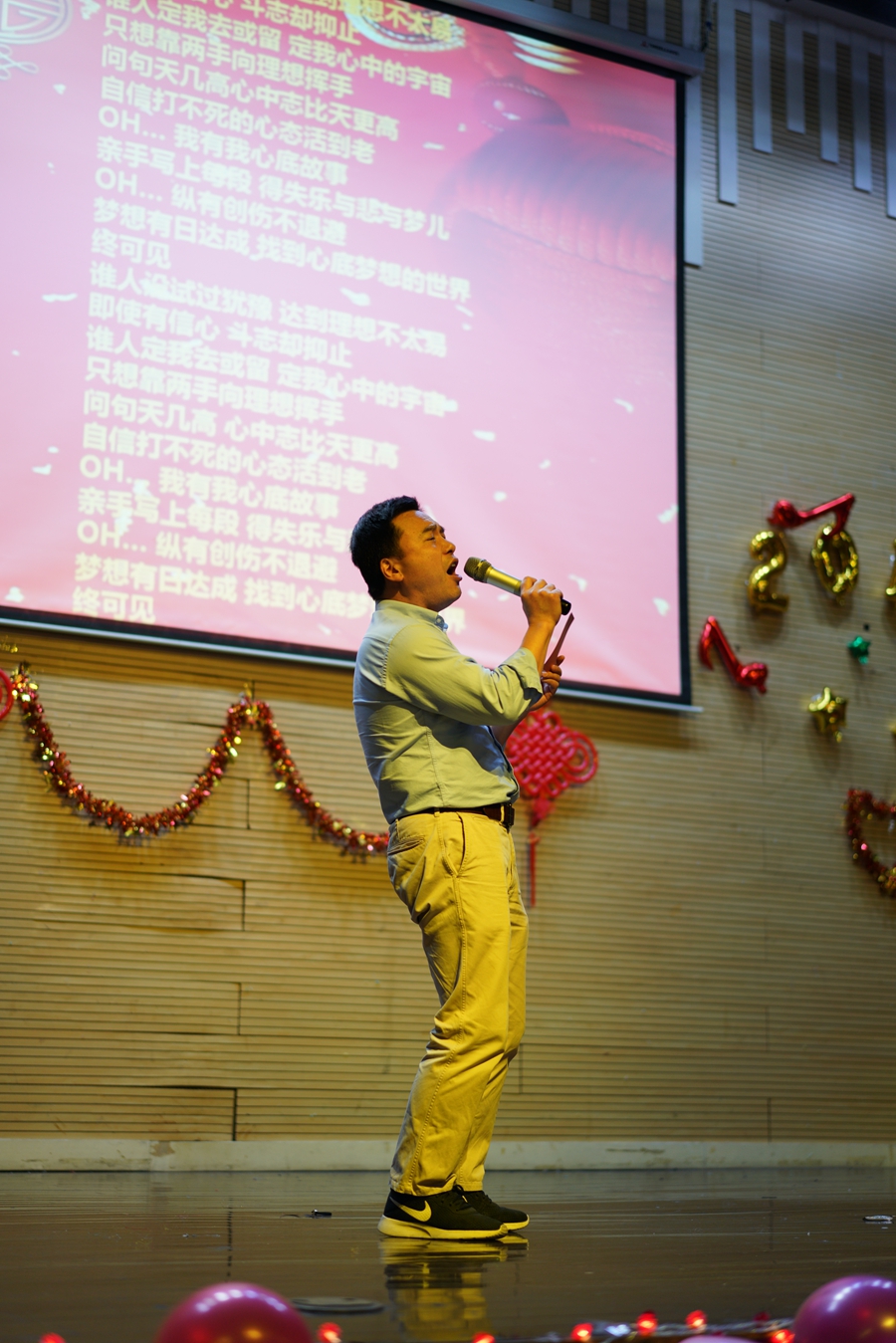 院长程亚老师带来的粤语歌曲《不再犹豫》,激情澎湃,引来大家热情的欢呼,他也非常开心得与大家互动。