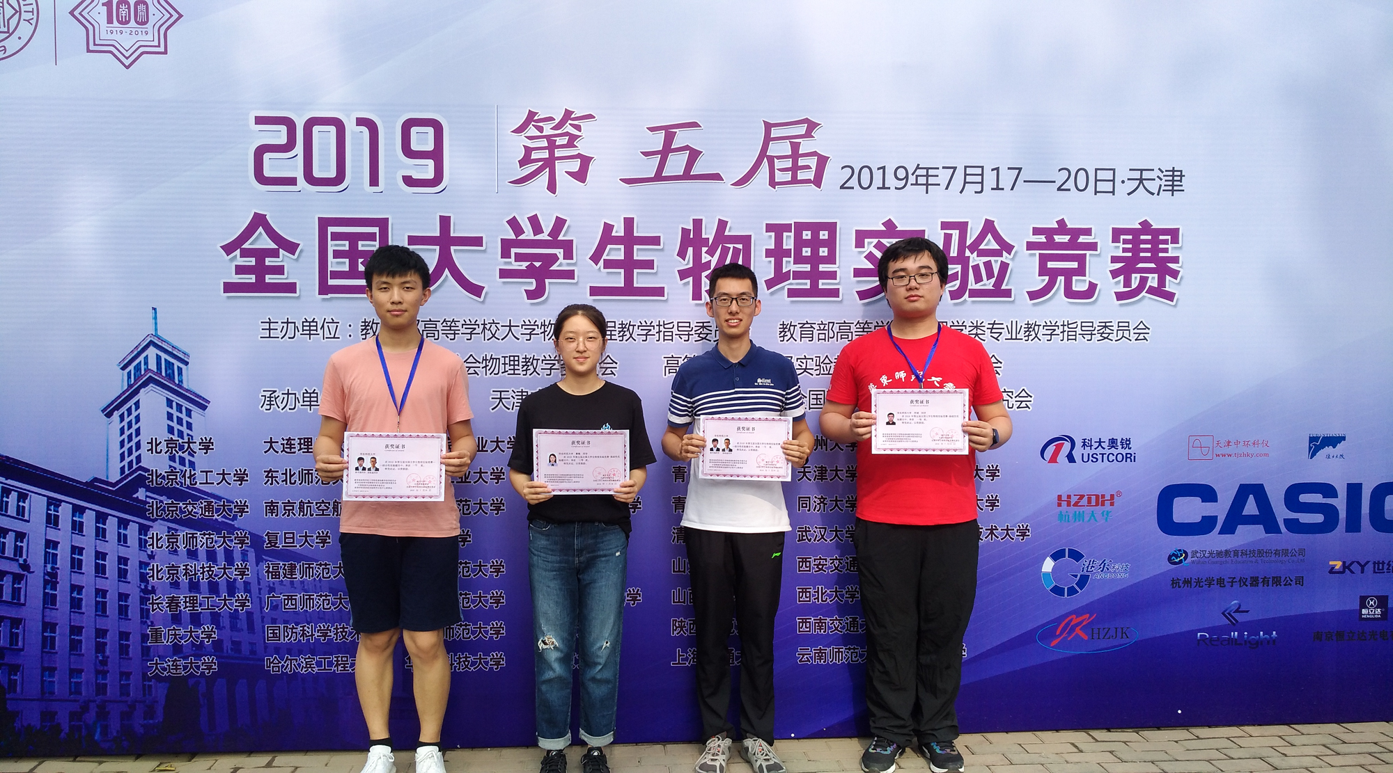 我校四名参赛选手徐书逸、棊懿、郑铭基、苏虓在第五届全国大学生物理实验竞赛斩获佳绩