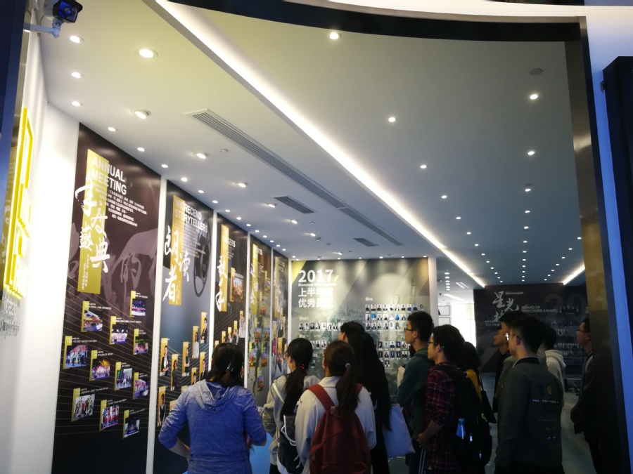 二楼与三楼则是技术员与工程师的办公处,由于客户信息的保密性,我们无法进入参观,只能在门外根据带队的介绍了解该公司的职能安排。参观这两层后,印象最深的一点便是该公司的保密措施,为防止客户信息泄露,工作人员禁止将手机和U盘带入办公区,入职时还有专门的保密培训,严格的制度也让师生们大开眼界。