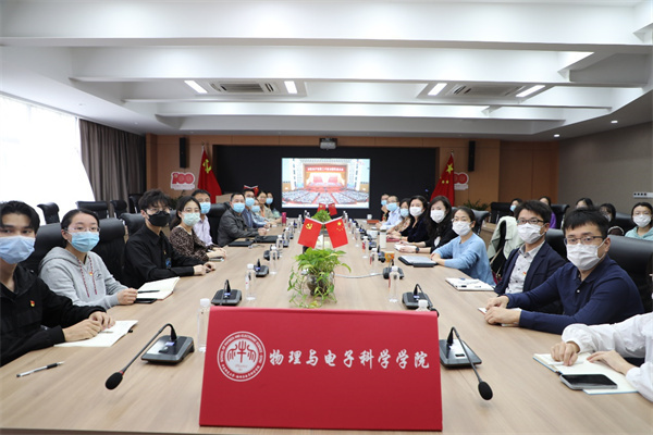 自党的二十大胜利召开以来,物理与电子科学学院党委按照习近平总书记提出的“五个牢牢把握”的重要要求,组织各师生党支部在全面学习、全面把握、全面落实上狠下功夫,以高度的政治责任感和使命感,全力推动党的二十大精神入脑入心、见行见效。