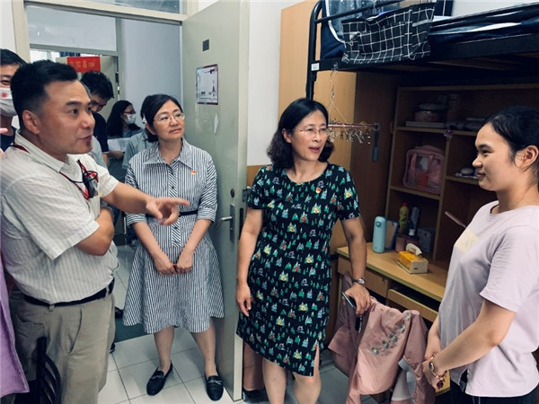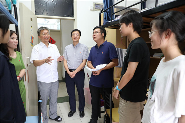9月12、13日下午,学院党委书记李恺,院长程亚,常务副院长段纯刚,副院长周先荣、胡炳文,党委副书记蒋旭,物理系系主任陈丽清、材料系系主任敬承斌、电子系系主任唐晓东,电子系教工党支部书记黄荣,物理系副系主任尹亚玲等,在孟宪承书院党委书记兼院长吴薇,光华书院院长温玉亮等书院领导的陪同下,分组前往学生寝室,关心2020级新同学入学适应情况。